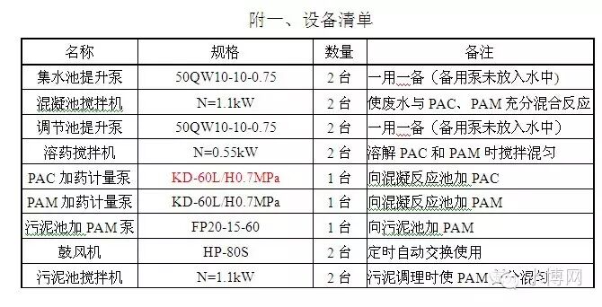 助凝剂:PAM配制浓度0.1%,即1份药999份水,加药量5mg/L,可按实际水质情况调整加药量以保证处理的效果。